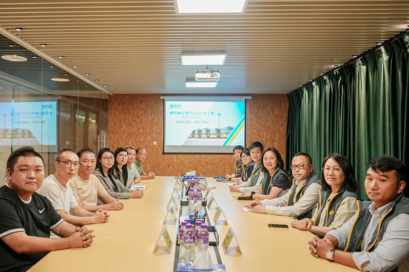 【特訊】澳門工會聯合總會副理事長李靜儀及澳門公共汽車工會一行日前到訪新福利,就本澳巴士服務現況及發展前景展開深入討論。新福利總經理鄭妙嫻、副總經理李啟見率領各部門主管出席,認真聽取工會意見並積極回應,致力攜手推動行業服務發展。