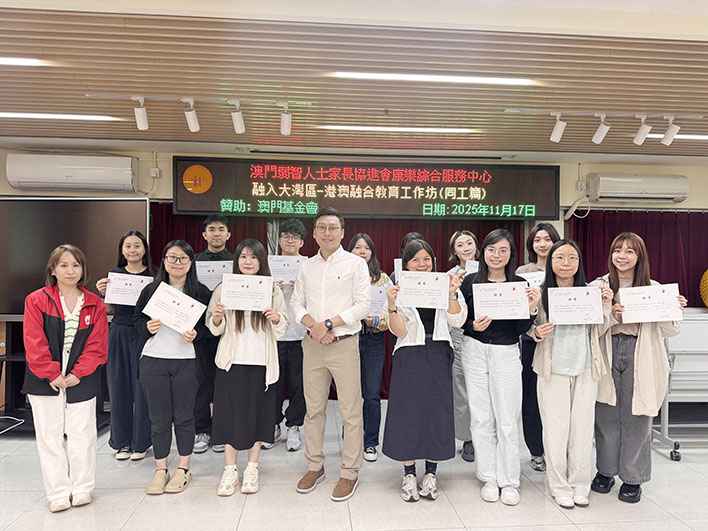 【特訊】由澳門基金會資助,澳門弱智人士家長協進會屬下康樂綜合服務中心於2025年11月中下旬,分別舉辦了兩場「港澳融合教育工作坊——高功能自閉症兒童的社交溝通訓練工作坊」,主題聚焦於高功能自閉症兒童的社交溝通表現與訓練策略,吸引眾多家長及專業同工踴躍參與。