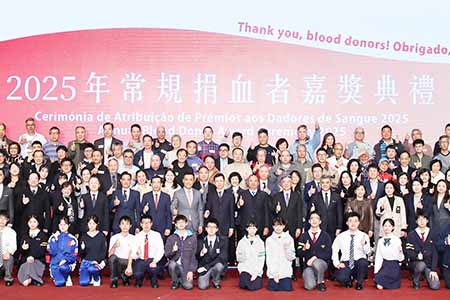 他又指出,隨著本澳社會人口老齡化、慢性病流行,醫療機構對血液的需求日益增加。無私奉獻的捐血者不僅為臨床醫療救治提供有力支撐,更以實際行動生動地詮釋人道主義精神。在2024年,本澳共有13,740位居民登記捐血,為3,626位病患提供16,158個單位的血液及血液成分,更是臨床各類救治工作堅不可摧的保障,並呼籲各界繼續積極支持捐血行動,鼓勵身邊人加入捐血者行列,共同為實現“幸福澳門”的施政願景貢獻力量。