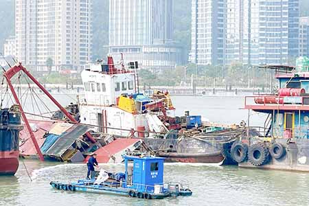 由於傾側漁船漏出少量油污,本局啟動防溢油機制,佈置吸油條,現已完成清理。