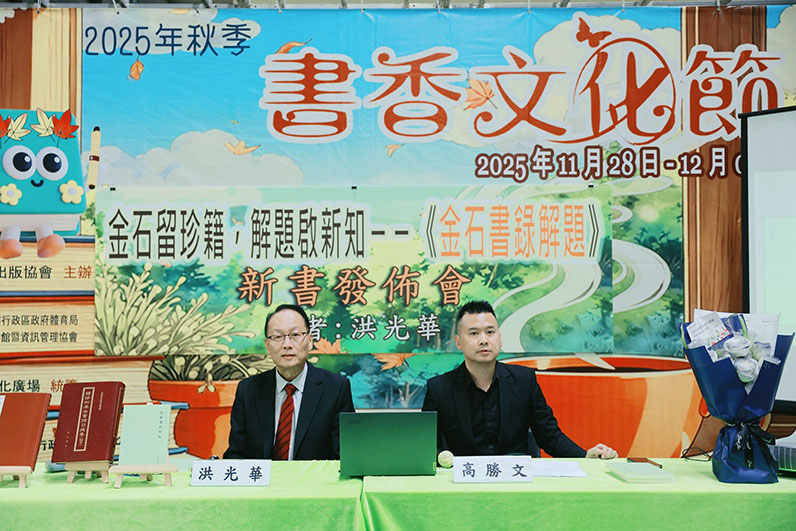 新書發佈會由文史學者洪光華博士擔任主講嘉賓,高勝•文化基金會創辦人、國際(澳門)學術研究院院長高勝文博士擔任主持。洪光華博士認為,古文字是中國文化的基石,他表示,《金石書錄解題》一書以劉節先生上世紀三十年代為《續修四庫全書總目》所寫提要為主幹,再輯集劉教授散落在其它刊物的為古文字新書所寫的書評、序跋,以及他對古音韻學、古文字學的論述。因為並非學習文史專業出身,洪博士專門講述了其輯集此書、釋讀出注時碰到的困難和樂在其中的感受,並感謝那些一直幫助他的師友。會上,洪博士回答了聽眾的提問,分享他開展學術研究的心得,與聽眾交流互動熱烈。