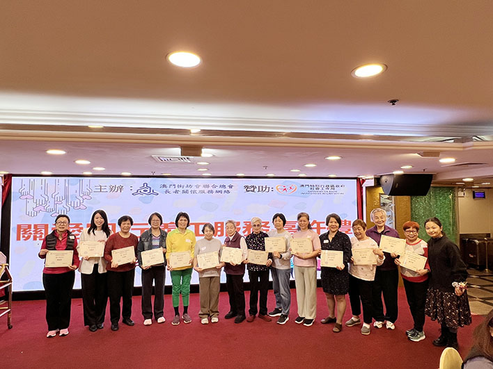 【特訊】澳門街坊會聯合總會長者關懷服務網絡日前舉行「關愛同行義工服務嘉許禮」,以表彰過去一年積極服務獨居長者的義工。本次活動由社會工作局贊助,共有超過545名義工達成服務指標,其中54人因表現卓越而獲嘉許。