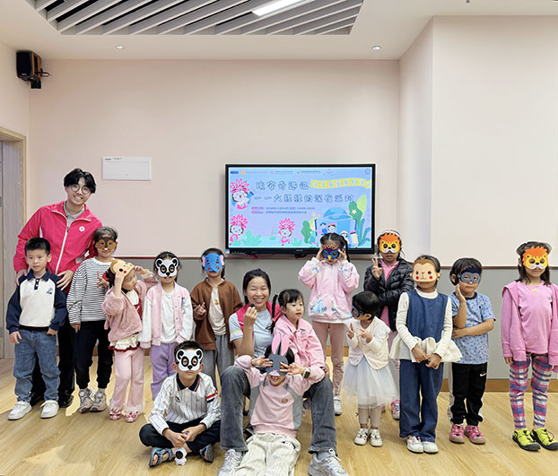 “晚安奇遇記·大猩猩的深夜派對”活動則圍繞無字繪本《晚安,大猩猩》展開。兒童佩戴動物面具,化身繪本角色,在老師帶領下通過觀察畫面、自由講述故事的方式,學習用語言表達畫面情節。在“悄悄尾隨”等互動遊戲中,兒童在角色扮演中體驗情境故事,既釋放天性,又在遊戲中學習遵守規則和團隊協作。