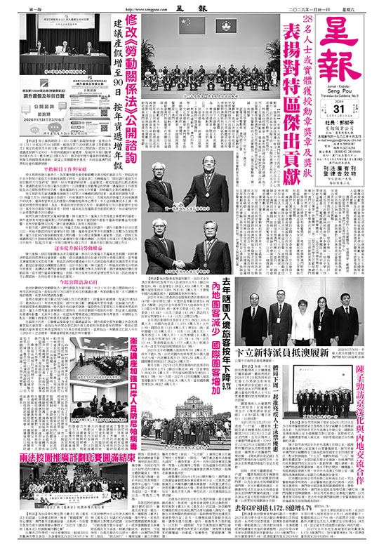 陳子勁司長拜訪中共中央港澳工作辦公室、國務院港澳事務辦公室並獲主任夏寶龍接見。陳司長重申澳門保安範疇將全力肩負起築牢國家安全防綫的責任,配合對接國家“十五五”規劃和特區“三五”規劃作整體部署,全面防範各類安全風險,加強澳門與內地有關部門的交流合作,推動琴澳一體化發展,助力澳門特區高質量發展、高水平對外開放,積極融入和服務國家發展大局。中共中央港澳工作辦公室、國務院港澳事務辦公室副主任農融參加會見。