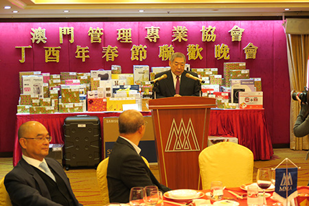 澳門管理專業協會昨舉行春節聯歡晚會,會長崔世昌表示,過去一年,協會秉持精進不懈,超越自我的原則,積極配合政府的施政方針,在講座工作坊、學位課程、專業證書課程、培訓課程及顧問服務等基礎上推陳出新為社會各界提供貼切的管理服務及教育服務。