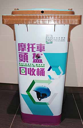 「源頭減廢,分類回收」是特區政府重要的環保政策,環境保護局聯同交通事務局、民政總署推出「摩托車頭盔回收計劃」,於本年五月十日至八月十五日期間於環境保護局、交通事務局及民政總署轄下部分對外開放服務站、公共停車場設置共廿三個回收點,同時,市民亦可攜頭盔至「環保Fun」各回收站點及參與回收計劃的摩托車頭盔銷售商進行回收,詳情可瀏覽環境保護局網站(www.dspa.gov.mo)或致電「環保熱線」(2876 2626)查詢。