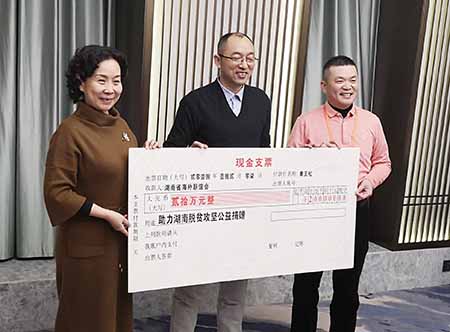 國家主席習近平上個月於北京人民大會堂會見港澳慶祝國家改革開放四十周年訪問團,發表講話時曾指出,廣大港澳同胞到內地投資興業,不只是因為看到了商機,而且是希望看到內地擺脫貧困、國家日益富強。考察團心繫湖南省貧困地區的老百姓,黃天松以個人名義現場捐贈二十萬元人民幣,澳門福建體育總會現場捐贈十萬元人民幣,助力湖南省脫貧攻堅,彰顯守望相助、血濃於水的同胞之情。