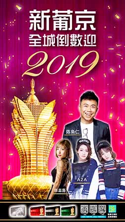 【特訊】─「新葡京全城倒數迎2019」慶祝活動將於除夕夜在新葡京戶外廣場舉行,香港實力派歌星獲邀表演助慶,配合整座建築物的特別燈光效果,與觀眾一同喜迎新年的來臨。