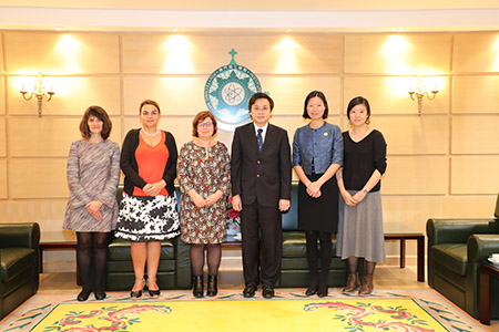 澳門理工學院院長嚴肇基與到訪的歐盟口譯總司澳門培訓協調員Etelvina Gaspar女士及葡語組負責人Anabela Frade女士進行了禮節性會見。嚴肇基院長對雙方長期以來的友好合作表示滿意,並指出會議傳譯研修班的舉辦對澳門、中國內地以及整個亞洲傳譯人才的培養具有非常積極的意義,在澳門葡語平台建設及“一帶一路”、大灣區建設的背景下顯得尤其重要。