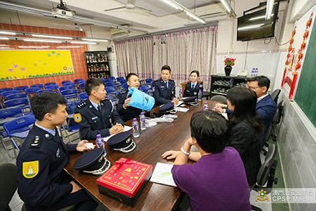 此外,治安警察局代表聽取了校方反映的各項有關治安問題、學校周邊交通情況、預防青少年犯罪等方面的意見,積極與校方探討相關議題,並就合辦預防青少年犯罪講座達成共識,繼續深化「警•校聯絡機制」。