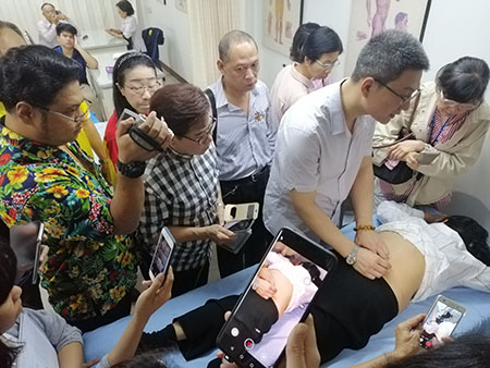 今年是泰國中醫合法化的第19個年頭,在泰國具有中醫執業資格證的中醫師已超過1000名。目前,泰國有9所大學開設中醫專業,今後每年將有上百名畢業生加入到泰國執業中醫師隊伍中。為了給泰國中醫師提供一個系統的在職培訓平台,2016年,泰國東方大學孔子學院、泰國中醫師總會和中國溫州醫科大學聯合成立了泰國“卓越中醫師培訓基地”。