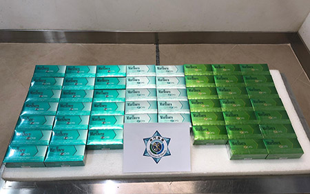 9月30日下午,澳門國際機場關員對一名入境女性旅客進行截查,發現其攜帶的4個塑膠袋內藏有大量煙草類物品,經核實合共10,000支“均化”煙草(電子煙煙彈)。同日晚上,關員在關閘口岸對一名回澳的本地女性居民進行檢查,在其隨身行李內查獲4,200支香煙。兩名涉案者分別為內地及本澳居民,皆選用綠色通道(無須申報通道)過關,以逃避關員的檢查。兩人年齡分別爲26及64歲,由於未能提供有效的申報文件,海關已根據《對外貿易法》作出起訴,一經判罰,可科處澳門幣5千元至10萬元罰款,而被查獲的貨物亦會宣告歸澳門特別行政區所有。