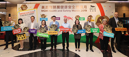 多位嘉賓應邀出席2019「獅展健康安全推廣月」開幕禮,包括勞工事務局局長黃志雄、勞工事務局職業安全健康廳廳長林玉章、博彩監察協調局互相博彩監察廳廳長王定國、澳門工會聯合總會會長陳錦鳴、澳門扶康會會員大會主席飛迪華、美高梅中國控股有限公司總裁及首席財務官王志琪、美高梅人力資源高級副總裁余婉瑩、美高梅保安安全高級副總裁何邦彥、美高梅人力資源副總裁趙翠華及美高梅風險及安全管理行政總監楊宏豐。