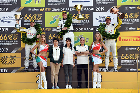 【特訊】由澳門博彩股份有限公司(「澳博」)冠名贊助的「澳博澳門GT盃-國際汽聯GT世界盃」昨天舉行決賽,最後由車手馬些路勇奪冠軍,亞軍及季軍分別為雲科爾及班博。賽後,澳博董事局主席何超鳳女士、常務董事兼行政總監梁安琪女士及董事霍震霆先生分別向冠、亞、季軍車手頒發獎盃。澳博董事局主席何超鳳女士表示:「澳博很榮幸連續第五年冠名贊助『澳博澳門GT盃-國際汽聯GT世界盃』,以表示我們對澳門大賽車的持續支持。我們相信,這項本地車壇盛事將有助加強澳門作為世界旅遊休閒中心的地位。」