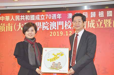 【特訊】中山大學嶺南(大學)學院澳門校友會昨(二十九日)在萬豪軒舉行慶祝偉大祖國成立七周年、澳門回歸二十周年暨該會成立及首屆理監事就職典禮,中聯辦青年工作部部長徐婷、中山大學嶺南(大學)學院院長陸軍教授、黨委副書記黃濤、南粵集團投資發展部副部長周昊、中山大學澳門校友會會長霍志釗等嘉賓出席主禮。會長高美燕勉勵全體成員繼續努力,秉承嶺南學院的優良傳統,為特區建設、為澳門經濟發展、社會穩定貢獻綿力。