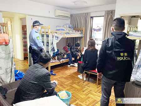 治安警收到舉報指,氹仔奧林匹克大馬路一單位懷疑有人經營非法旅館,經分析鎖定目標。本月十九日中午採取行動,派員突擊巡查該單位,於屋內截獲兩男兩女內地租客,年齡由二十五至五十歲不等,全部持中國護照。經盤問,其中兩名姓盧及姓鄧男子供稱,每人以周租七百元租住上址。其餘兩名女客供稱認識盧、鄧兩人,透過其安排入住,無需付費。警方正進一步調查案件,同時旅遊局查封上址。