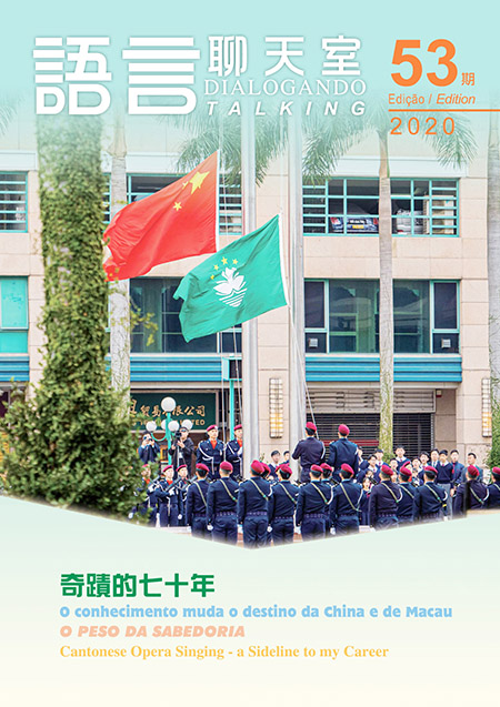 【特訊】由教育暨青年局編印,刊登中葡英三種語言文章的《語言聊天室》第53期已經出版。本期「語言天地」的主題為「新中國成立70週年及澳門回歸祖國20週年」,主要內容有「Os 70 anos de milagres」,作者以奇蹟70年來細訴我國70年來的發展成就,讓讀者加深對國家的認識,並以身為中國人而感到自豪;《知識改變中國與澳門的命運》一文分析教育對社會發展的影響,鼓勵青年思索在祖國發展的大環境下,要融入其中,開創未來;《以史為鑒,可以知興替――參觀「中國出了個毛澤東」圖片展有感》,作者分享參觀回顧毛澤東事蹟圖片展後,明白以史為鑒的意義,以及幸福得來不易的感想。還有其他與主題相關的文章,值得細讀。本期部分文章為中葡雙語或中葡英三語對照,方便讀者學習。