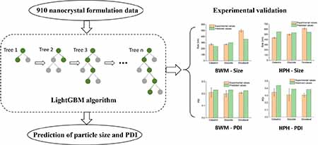 目前的在研藥物中大約有40%的藥物存在水溶性較差的問題。由於這一特性,這些藥物常常難以通過傳統的藥物製劑技術獲得理想的生物利用度,進而發揮藥效。研究發現,納米晶體製劑對於提高此類難溶性藥物的生物利用度有較好的效果。然而目前納米晶體的製備高度依賴於專家的經驗以及反復的實驗試錯,因此研發過程耗費大量的人力物力,失敗風險較高。近年來基於大數據的機器學習算法在網路優化、資訊管理、生物醫學以及材料科學等諸多領域展現出巨大的潛力。其特點在於能高效快速的從已有資料中找出數據間的內在聯繫,並應用於未知數據的預測。基於此,澳大研究者從實驗室內部和已發表文章中提取了910條納米晶體製備相關數據,利用機器學習算法找出數據間內在規律,並最終預測不同製備方法下納米晶體的粒徑和多分散係數。研究結果證實,澳大研究團隊建立的機器學習算法對“自上而下”(“Top-down”)方法製備的納米晶體具有較好的預測準確性。此研究成果對於納米晶體產業化過程中合理處方設計,縮短研發時間具有重要意義。