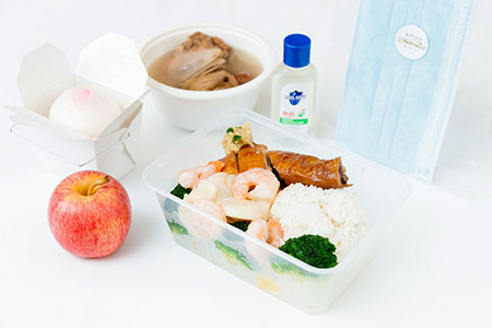 澳門金沙今年特意烹調有效增強免疫力的川貝海底椰無花果老雞「抗疫湯」,並隨餐盒附上一支酒精搓手液及兩個外科口罩,繼續與澳門攜手抗疫。