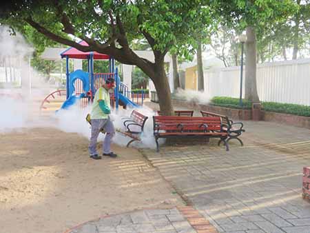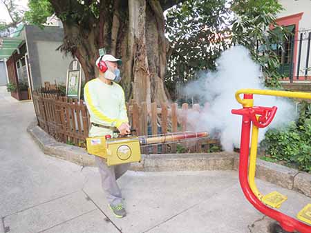 基於成蚊的生活習性,市政署會於清晨六至九時以及黃昏五至八時成蚊活躍的時段,對轄下公園、休憩區、墳場、街市及小販區等約一百七十多個公共設施進行化學滅蚊工作,除噴灑滅蚊藥外,亦會在容易積水的地方如溝渠及集雨水井等定期放入蚊砂,阻斷幼蚊生長成成蚊,盡量降低蚊子孳生機會。