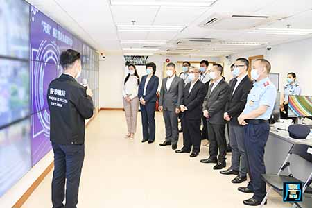 保安司司長黃少澤昨(5日)和警察總局局長梁文昌、海關關長黃文忠及一眾保安範疇的領導主管,到治安警察局總部大樓內的“全澳城市電子監察系統”(俗稱“天眼”)控制中心,觀看及了解第四階段“天眼”鏡頭的建設及運作的情況。