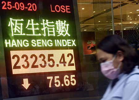 【香港中通社9月25日電】(記者 王姝)港股連跌2日,至約4個月低位。恆生指數25日收報23235點,跌75點,大市成交額1167億元(港元,下同)。