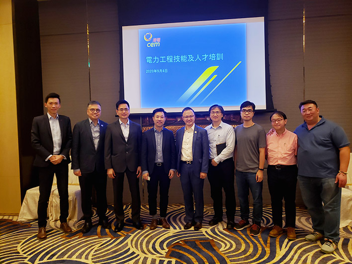 【特訊】澳門電力股份有限公司(澳電)工程技術團隊執行委員會顧問陳漢強、發電部工程及技術服務科高級工程師鄭德信、輸配電部配電站及工務科工程師林禮新、客戶服務部技術服務管理客戶顧問林梓華,於2020年9月4日與ASHRAE澳門分會會長黃承發、副會長陳錫邦、侯任會長黃肇雄、秘書長楊樹森工程師、財務長曹煒龍,在新濠影滙會議廳就澳門供配電行業電力工程技能及人才培訓展開交流會議。