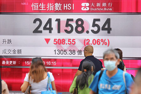 【香港中通社10月15日電】(記者 劉夢婷)香港恆生指數15日收市暴跌508點,報24022點;阿里巴巴等科技股下跌,汽車股繼續跑出。