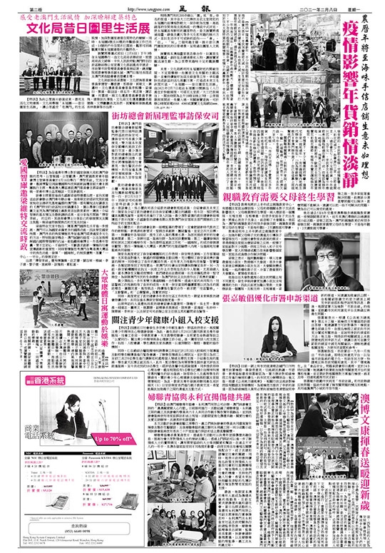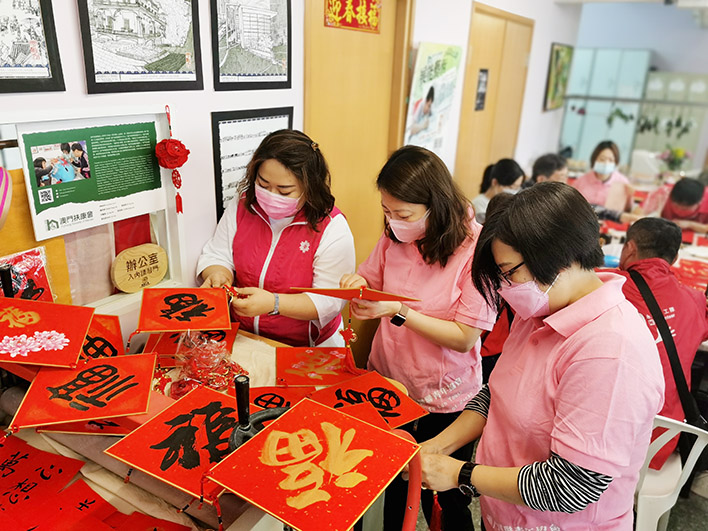 本次活動於扶康會創藝工房舉行,義工們與扶康會的學員共同書寫賀年揮春及製作花藝擺設;及後婦聯青協的義工聯同永利義工隊一同分成數小組到扶康會服務使用者共二十戶家庭進行探訪和送上最真摯關懷。婦聯青協會長黃潔貞表示,透過是次活動可以向青年宣揚傷健共融信息,提高社會大眾對殘疾人士的接納及關心;透過上門探訪可以進一步了解殘疾人士的實際情況,讓有需要協助的人士得到關愛和幫助。在過去不平凡的一年中,本澳各個家庭受到不同程度的影響,政府支持及社會相互關懷與配合下,成了共建和諧穩定社會的關鍵;同時,她表示政府應持續推出政策支持殘疾人士重投社會和社服機構項目,增加殘疾人士參與社會的機會,支持他們融入社會,希望未來加快照顧者津貼的先導計劃及增加對雙老家庭的支援。最後,她期望本澳的青年人能成為傷健共融的推動者,互助互愛共建傷健共融和諧社會。