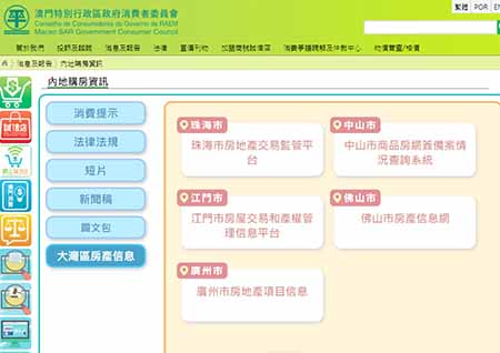 消委會與經科局繼早前與大灣區的珠海市、江門市、中山市及佛山市建立恆常的協作機制,現再增加廣州市加入「聯防機制」,消委會網頁(www.consumer.gov.mo)的「內地購房資訊」專區已連線以上五個城市的房產交易信息平台,專區內並載有「消費提示」,為消費者提供內地購房須知及要注意的風險事項。