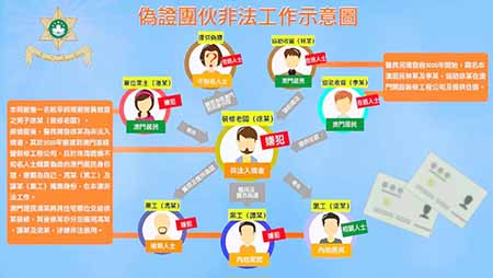 警方調查發現,徐姓男子沒有出入境本澳的記錄,經分析鎖定目標,本月六日在黑沙環某裝修工程公司,拘捕老闆徐姓男子,並將其帶返警局問話。徐某徐姓男子承認去年八月游泳偷渡來澳,透過一名在逃本澳男子,協助租用上述地舖開公司,之後再透過他人介紹聘請涉案的譚姓及梁姓男子做黑工。徐姓男子來澳前,還在內地以合共二千元,購買五張偽造澳門身份證,用作給予所聘請的黑工。警方行動中,在徐姓男子位於長壽大馬路的住所起出有關的假證。