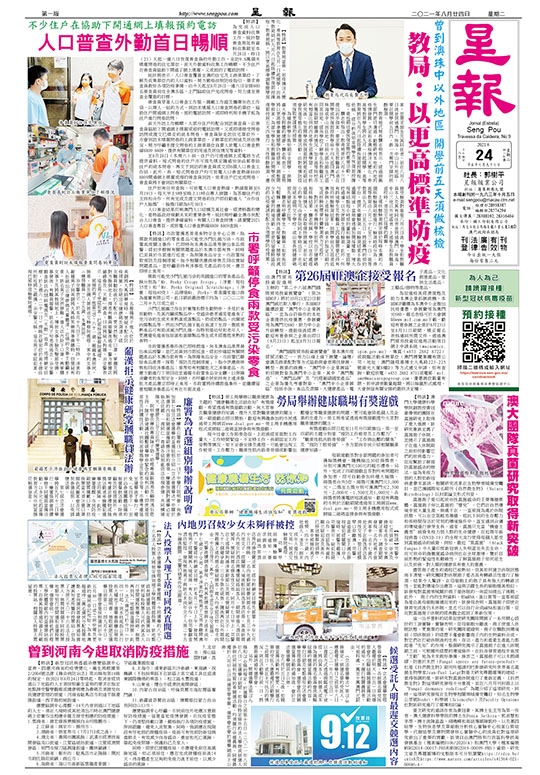 曾到澳珠中以外地區 開學前五天須做核檢 教局:以更高標準防疫