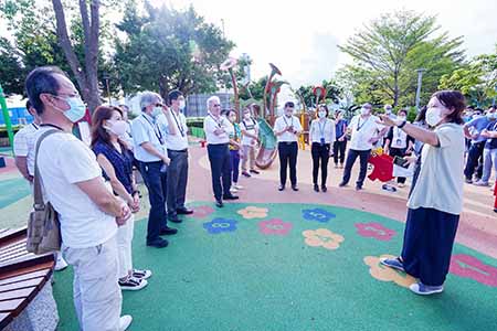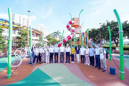 市政管理委員會副主席羅志堅,委員關施敏等,陪同市政諮詢委員會主席司徒民義、副主席鍾國榮及多名委員視察氹仔海濱休憩區內新增的兒童遊樂區。市政署人員介紹時表示,為完善氹仔海濱休憩區單車徑周邊配套,將休憩區海濱廣場側作重新規劃設計成兒童遊樂區,佔地面積約七百五十平方米,劃分不同年齡區域。兒童遊樂區以山坡、草地及大地色系作主色,配以昆蟲、花朵、植物等元素點綴;設有適合五至十二歲兒童的大型滑梯組合、具歷奇元素的繩網組合及山坡滑梯、同時設有共融元素的親子鞦韆及籃型鞦韆,亦設有適合二至五歲幼童使用的遊戲架組合及搖馬遊具等。配合周邊的自然環境,除保留原有樹木外,亦加種樹木及綠化以達到自然遮陽的效果。另外,新增設施亦包括佔地約三百一十八平方米的康體區,設多功能健身組合、健身單車、滑行機等,適合青年及成年人鍛鍊。園區入口處設有兒童洗手盆及飲水機設施,方便市民使用。