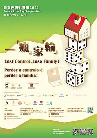 【特訊】由社會工作局、博彩監察協調局及澳門大學博彩研究所合辦的“負責任博彩推廣2021”於9月23日啟動。今年繼續以“一「瘋」家「輸」”(Lost Control, Lose Family)作為推廣主題,旨在提高市民對賭博失調的認知及提升家庭教育的重要性,並在9月至12月期間與相關社服機構及博彩業界舉辦系列宣傳活動,內容包括社區宣傳推廣及活動、RG網絡互動遊戲及閉幕禮等。