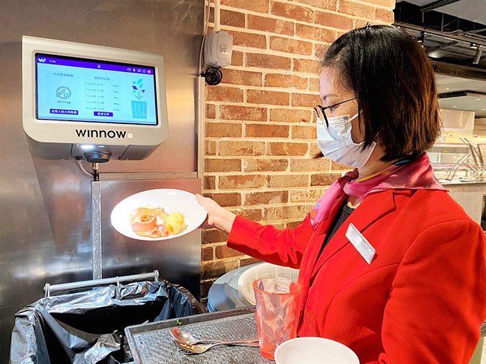 去年,新濠於旗下所有物業採用以人工智能技術驅動的Winnow Vision系統,以解決同事用餐區廚房生產過剩所造成的廚餘問題。透過仔細追蹤廚餘數據,團隊確認出餐盤浪費為同事用餐區之食物浪費的主要來源。