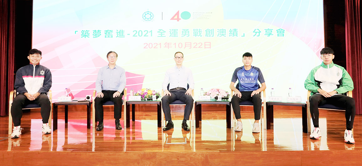 澳門理工學院體育教育學士學位課程四年級學生、800米澳門紀錄保持者勞偉源分享了在全運會上勇破澳門紀錄的備戰與比賽過程的心得。他表示當知道有機會代表澳門參加全運會時,便與教練立即進行溝通並定下參賽計劃,感謝教練的悉心培育,同時也鼓勵所有運動員要定下自己的目標和堅持做每件事,從而提升自己及更快達成目標。運動及體育碩士學位課程一年級學生、澳門田徑青年組4×100米紀錄保持者之一林楚祺表示在年中的春季田徑賽中成功突破了自己的一個瓶頸,成功進入11秒內,同時整季的訓練狀態都十分理想,他鼓勵年輕人應從挫敗中學習,要努力和奮鬥才能更容易達到目標,並提及到最重要是享受過程,從過程中學習。體育教育學士學位課程三年級學生、澳門田徑男子青年組跳遠紀錄保持者何俊琳認為本賽季較顛簸,因為今年2月受傷,到年中才復出恢復訓練,所以在7月的全大運及9月的全運會上都能做到7.20米及7.15米的成績,已經相當滿意,他鼓勵每一位運動員及市民多拼搏超越自己的潛能。