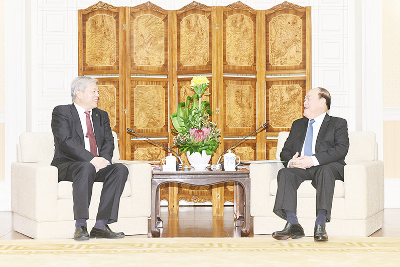 【特訊】行政長官賀一誠昨日(19)日在政府總部會見澳門中國企業協會會長傅建國一行,雙方就金融、建築和電訊等行業的發展,以及橫琴粵澳深度合作區建設等議題交換意見。