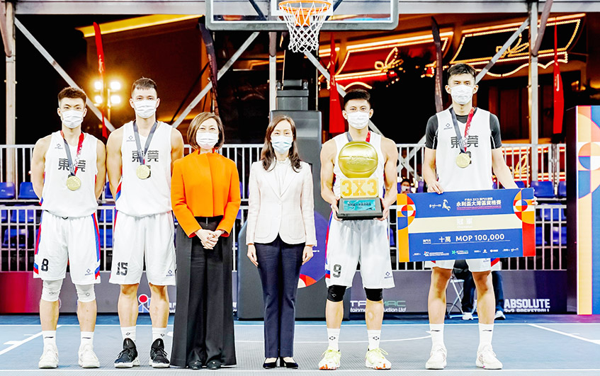 【特訊】由體育局及澳門星娛樂製作有限公司主辦,中國澳門籃球總會及絕對三對三有限公司協辦,永利渡假村(澳門)股份有限公司冠名贊助的《FIBA 3x3 澳門大師賽 - 永利盃大灣區資格賽》,昨日(28日)於永利皇宮舉行決賽,由東莞隊贏得冠軍,賽後由社會文化司司長歐陽瑜等頒發獎項。