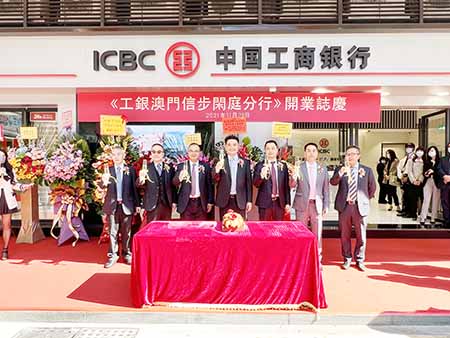 工銀澳門信步閑庭分行座落於筷子基中心地段,由原海擎天分行搬遷至信步閑庭全新地標,鄰近新興商圈購物中心、人口集中的民生區,重點打造面向個人客戶及中小企的全功能網點,提供智能銀行升級新體驗,增設智能自助「理財小店」,配置新型電子機具及貼心實用佈置裝修,大大提升客戶服務便捷性。同時,信步閑庭分行積極為周邊商圈的中小企及居民提供個人財富管理等金融服務,為廣大客戶提供更優質、更專業的多元金融服務。