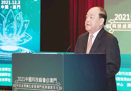 由澳門特區政府與中國科學技術協會共同舉辦的「中國科技峰會」於昨日開幕。本屆峰會的主題為「科技成果轉化促進澳門經濟適度多元」,行政長官賀一誠在開幕式致辭時表示,為響應國家發展戰略,澳門特區積極融入國家創新體系,配合落實國家科創發展策略,未來將進一步完善科技成果轉化及科技產業發展的體制機制及政策環境,加大力度吸引科技企業、科技人才和科研成果落戶澳門,鼓勵科技創新和科研成果轉化;充分發揮高等院校、在澳國家重點實驗室和有關科研力量的作用,促進產學研深度融合,持續完善成果轉化配套措施,不斷提升澳門創新能力。