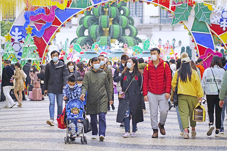 【特訊】統計暨普查局資料顯示,2021年第4季旅客總消費(不包括博彩)按年上升7.4%至63.1億元(澳門元,下同),不過夜旅客的消費(11.9億元)增加86.8%,留宿旅客的(51.2億元)則下跌2.2%。