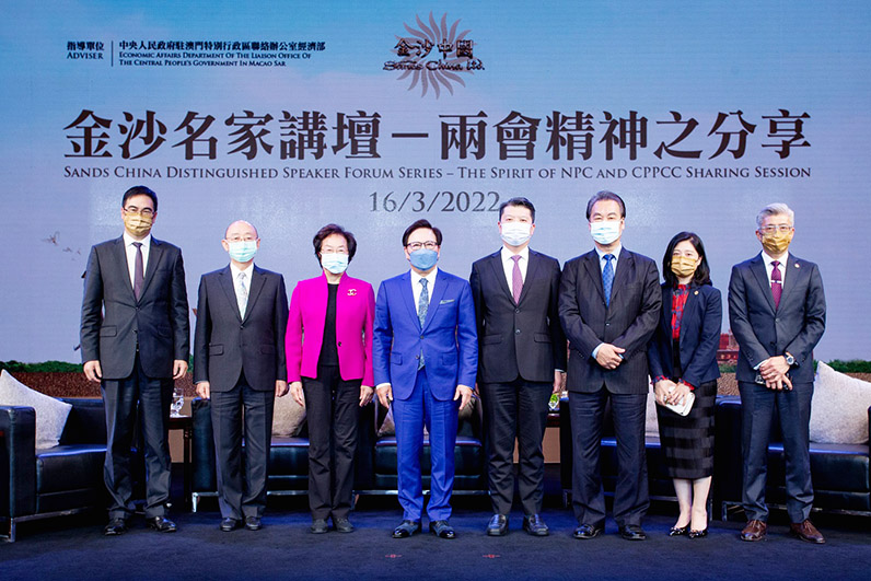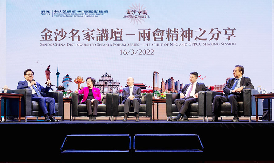「金沙名家講壇-『兩會』精神之分享」是員工職業素養培訓系列活動之一,旨在讓團隊成員深入了解並把握國家發展帶來的機遇,助力推動澳門發展成為世界旅遊休閒中心。金沙中國一直致力透過不同形式及活動,包括舉辦職業素養培訓課程、專題講座、交流活動、電影分享會等大大小小超過20次活動,提升全公司26,000名團隊成員的職業素養水平。