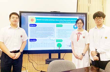 澳門培道中學高二年級的謝梓軒、區日朗和何曉澄三位同學開展的研究“無人機應用于澳門戶外健身區域空氣質量的研究”(Research on air quality monitoring in Macau outdoor fitness area by using drones),在地理學範疇獲得金獎。後疫情時代,澳門市民的健康意識加强,戶外健身區域人士逐漸增多,日益飽和。與此同時,澳門及周邊城市工程項目亦不斷增加,空氣質量受到影響。該研究在此背景下展開,通過數據收集及分析,探討采用無人機搭載空氣質量監測設備對澳門戶外健身區域空氣質量進行監測方法的可行性以及通過對收集到的不同類型(湖區和綠植區)的戶外健身區域的空氣質量數據進行分析和討論,爲市民的戶外健身方案提供參考建議。(指導老師:魏倩)