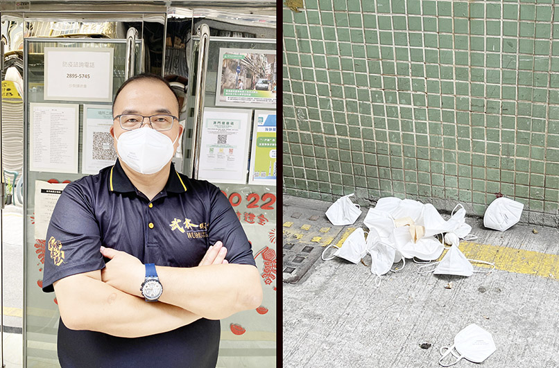 陸南德表示,現時本澳疫情已進入「鞏固期」,在居民、社會各界和政府的互相配合下,社區新增個案暫時「清零」,疫情已得到控制,但仍然不能掉以輕心。為此,居民外出時仍然需要佩戴保護力較高的KN95口罩。但近日有街坊反映區內部分街道有人隨意將口罩直接丟棄,不僅影響街道環境衛生,甚至有可能傳播病毒,引起附近街坊憂慮。
