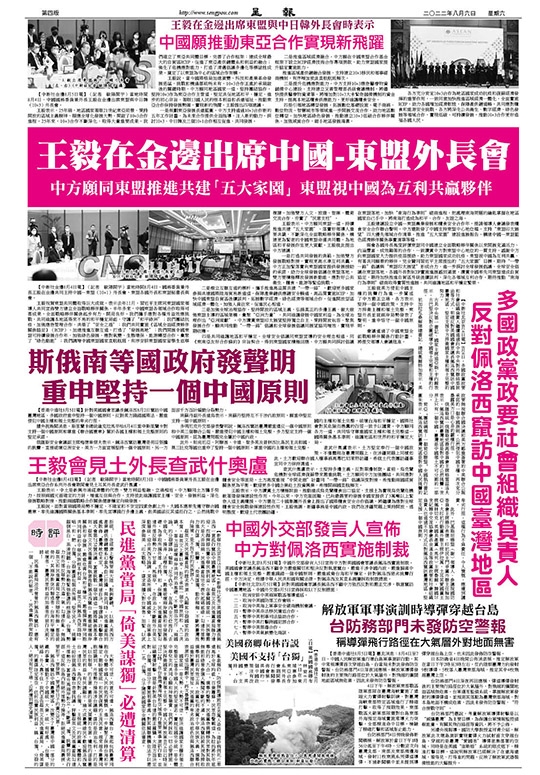 日本防衛省4日晚間公佈消息稱,推定解放軍在當日下午2時至3時左右,從內陸朝臺灣方向發射9枚導彈,5枚落入臺灣東部海域,推定其中4枚飛越臺灣上空。