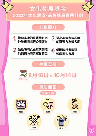 【特訊】文化發展基金於8月16日至10月14日接受2022年“文化展演─品牌推廣資助計劃”申請。