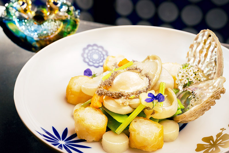 「金殿堂」的初秋鮑魚菜式將於九月限定供應,其他菜式包括「羊肚菌溏心鮑魚酥」,以及選用刺身級鮑魚入饌的滋補「松茸菊花燉韓國蝦夷鮑魚湯」等。