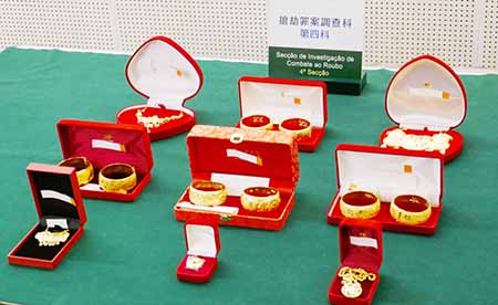 【特訊】司警偵破兩宗加重盜竊及詐騙案。一名本澳男子疑因嗜賭,多次竊取其妻子十三件總值十八萬元金飾典當,取得十四萬港元輸光,其妻子發現失竊後,疑犯為求掩飾而向警方報假案稱被入屋爆竊,司警經調查後揭發案件,將疑犯拘捕,並起回全部金飾;另一名無業男子涉嫌與友人到飲酒消遣,疑趁對方飲醉時偷取其一隻近十一萬元手錶典當,司警接報調查拘捕該男子,起回贓物,司警正就案件作跟進。