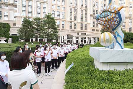 與此同時,來訪學生更參觀了度假村以及位於澳門上葡京東、西翼大堂的藝術品。一系列珍貴的藝術佳作由多位澳門藝術家特別為度假村量身創作而成,充分展現澳門中西合璧的文化背景及藝術創意。通過是次導賞活動,一眾學生深入了解到燈藝展的展品、上葡京的藝術品特色以及度假村的日常營運,對於「旅遊+文創」跨界合作的思路和可行空間有所啟迪,為澳門的多元旅遊吸引力及藝術文化創作奠定更堅實的發展基礎。