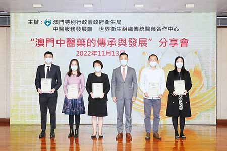 羅奕龍指出,澳門自2020年起,先後有4位青年岐黃學者,分別是王春明教授、陳美婉教授、梁麗嫻教授及蔣永興中醫生;今年莫蕙教授更成為澳門首位獲得“全國名中醫”稱號的中醫生,這對澳門的中醫發展有重大的裨益。衛生局會致力支持中醫持續專業教育及多元的培訓活動,並進一步探索適合澳門的中醫高層次人才培養模式,促進澳門形成多層次的中醫人才梯隊。他認為本次分享會是一個很好的起點,澳門的全國名中醫及青年岐黃學者作為澳門中醫藥行業的榜樣標杆,具有學術傳承及行業引領作用,期望他們帶領業界共同推動澳門中醫藥的傳承與發展。羅局長並向莫蕙教授等講者頒發導師證書。